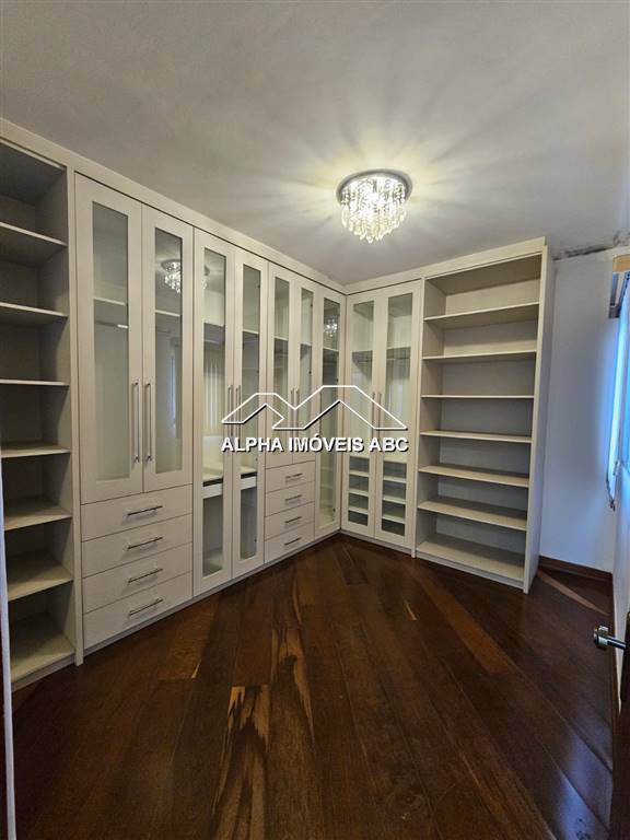 CLOSET SUITE: Closet com 09 gavetas grandes, cabideiro amplo e prateleiras superiores e inferiores para sapateira, acompanha lustre e cortina persiana.
